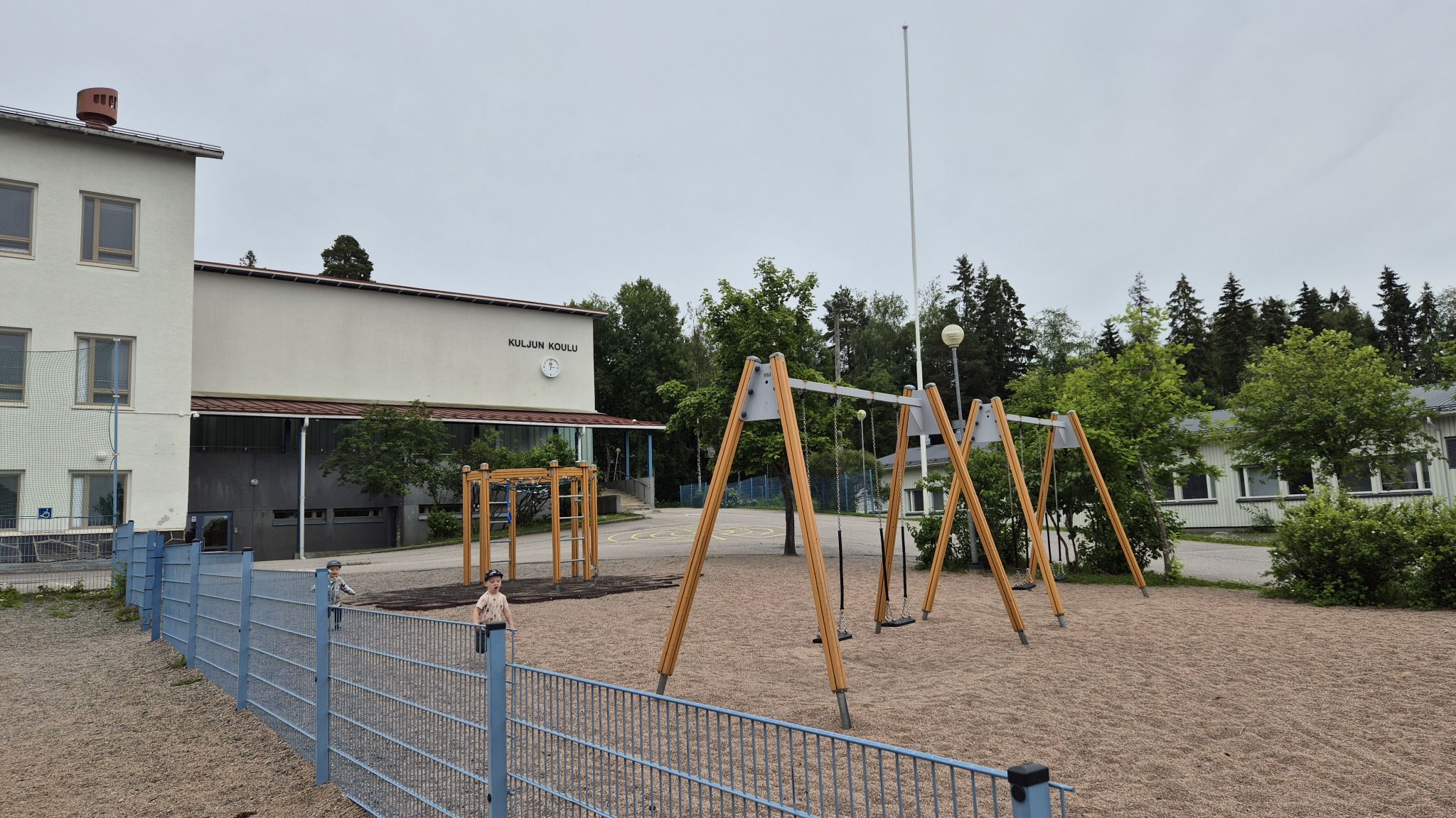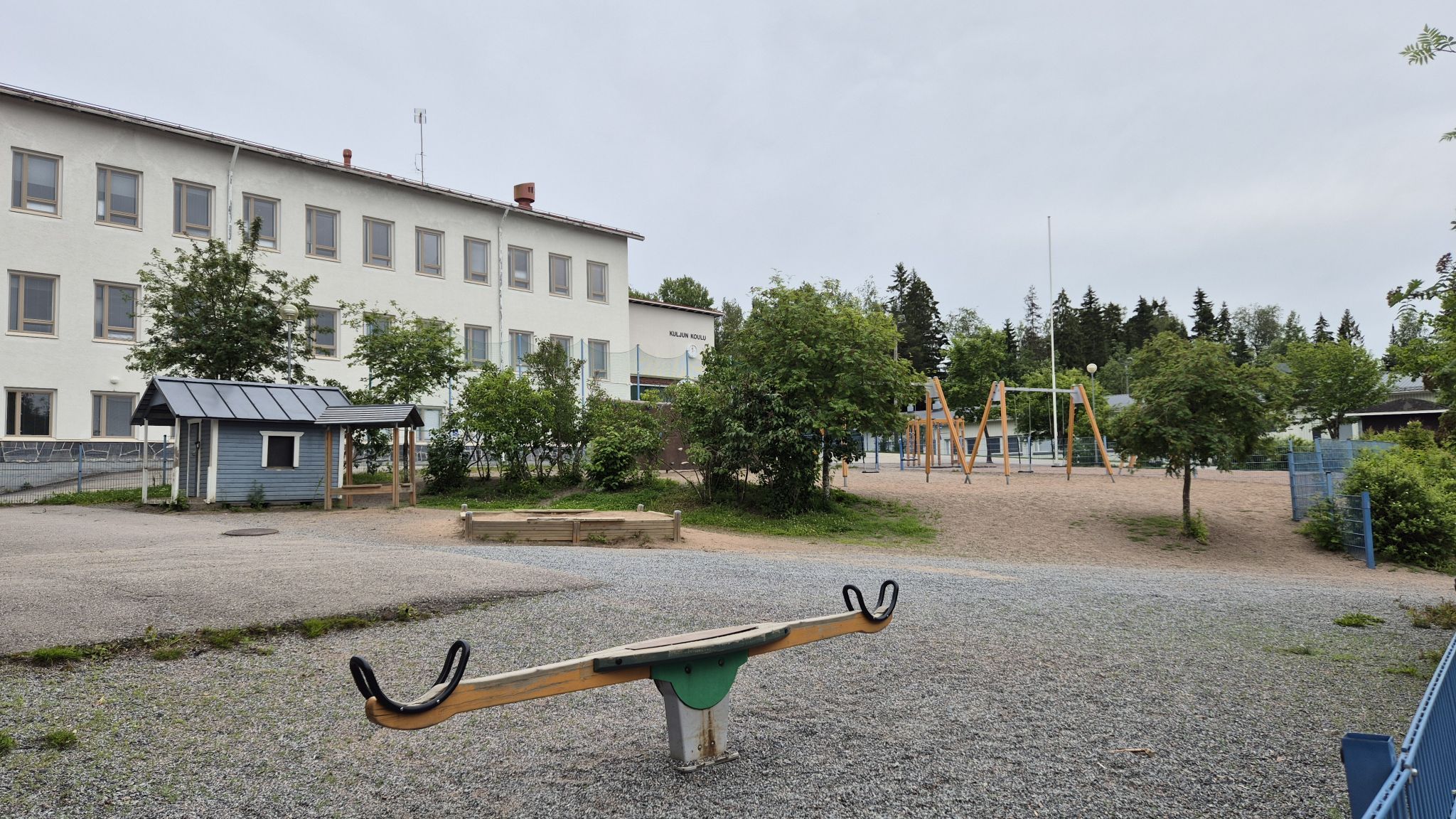Kuljun koulun piha on pirstonainen ja moniosainen alue: vanhan koulun, viipalekoulun ja erillisen eskarirakennuksen rikkoessa piha-aluetta. Leikkivälineet soveltuvat parhaiten koululaiselle: lähinnä kiikkuja ja muutama kiipeilyteline (myös hyvä kaksipuoleinen boulder-seinä). Lisäksi erilaisia kenttiä jalkapalloon, jääkiekkoon ja koripalloon. Varmasti ihan toimiva koulun piha, mutta leikkipaikkana ei niinkään ihan parasta / uusinta kaliiperia. Soveltuu lähialueen asukkaille.