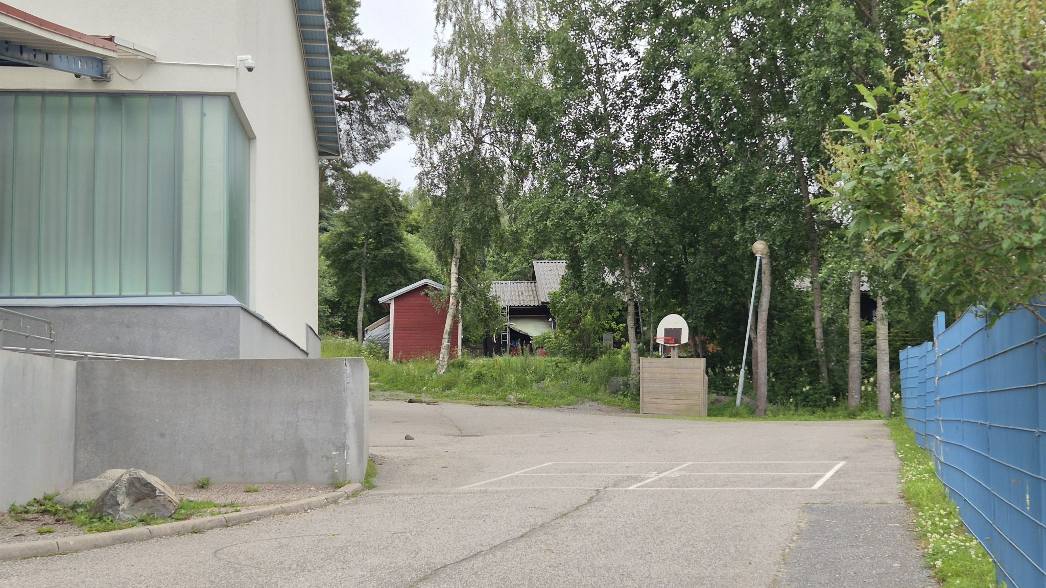 Puoliavoin, osittain aidattu pensailla/aidoilla, ei merkittävää riskiä