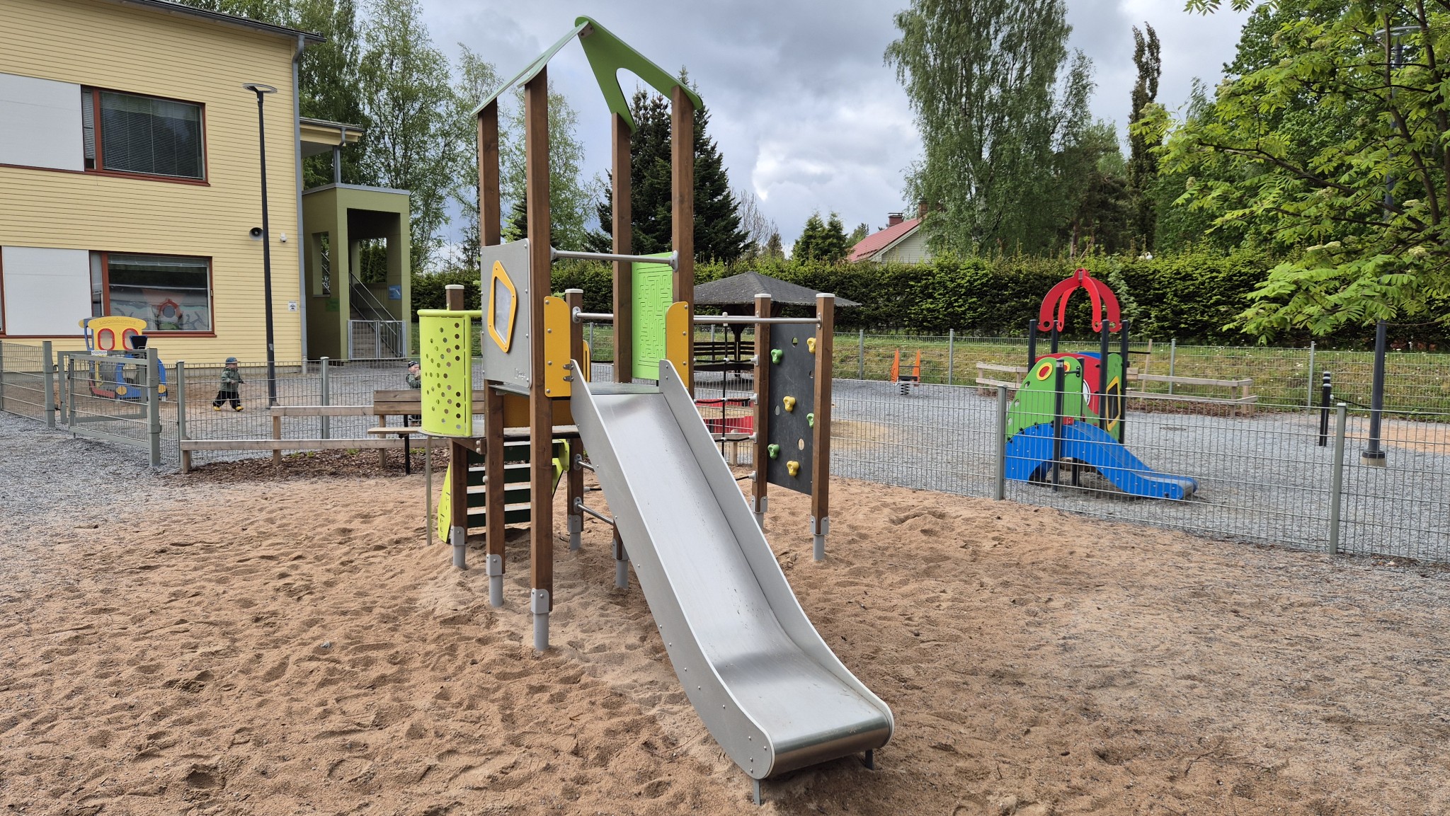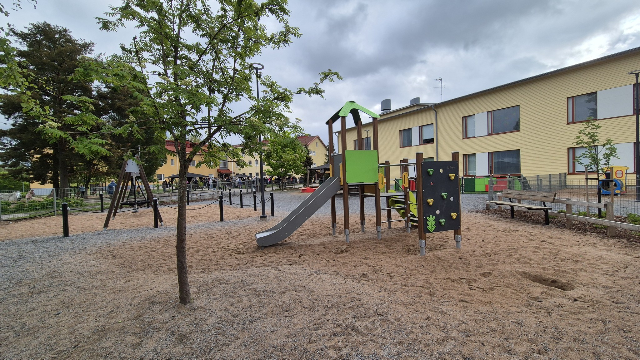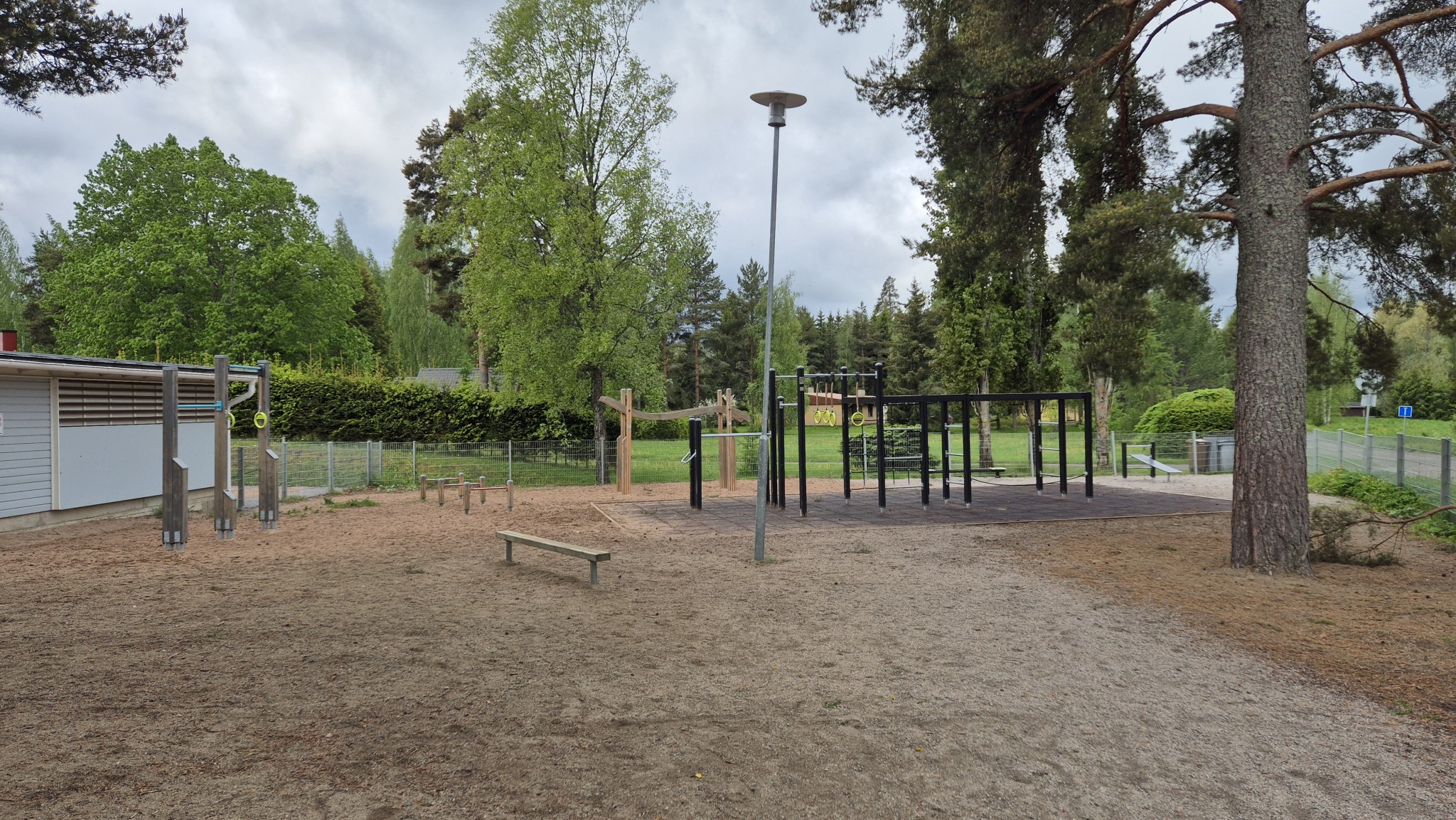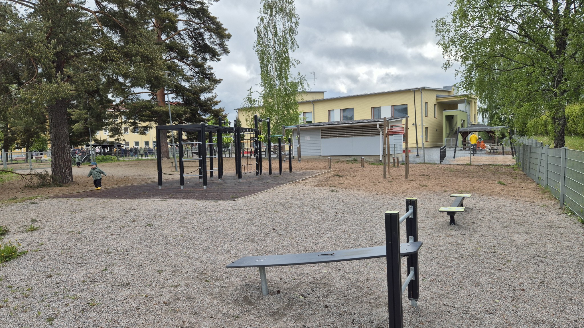 Liuksialan päiväkodin ja koulun piha on moniosainen kokonaisuus, jossa leikkialueet ovat lähellä toisiaan. Päiväkodin pihalla on omat alueet pienille ja isoille, sekä vierestä löytyy aidattuna vielä isommille, karkeasti ala-asteikäisille kiipeily/ulkokuntosali-osio. Koulun piha on rakennusten keskellä ilman aitoja, mistä löytyy muutamia lisätelineitä ja hauska pihlajan oksien alla oleva pesä/maja. Päiväkodin pihaa on uusittu merkittävästi vuonna 2024. Ulkokuntosalin laitteista yli puolet ovat vuodelta 2022. Pihapiiri on siis hyvässä kunnossa kaikin puolin. Fiilikseltään sympaattinen maalaismiljöö. Oheisaktiviteettina löytyy mm. pelihäkkejä, ulkopunttista, tasapainoilua. Monipuolinen ja laaja leikkialue. Suositus tänne.