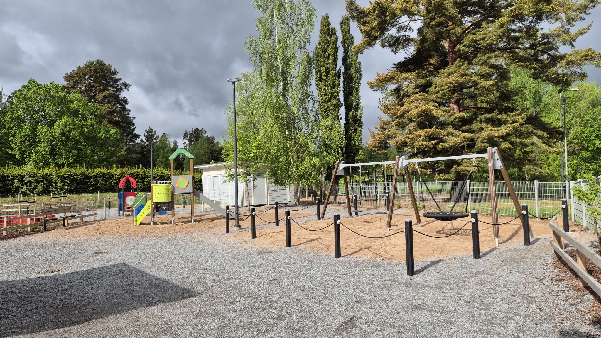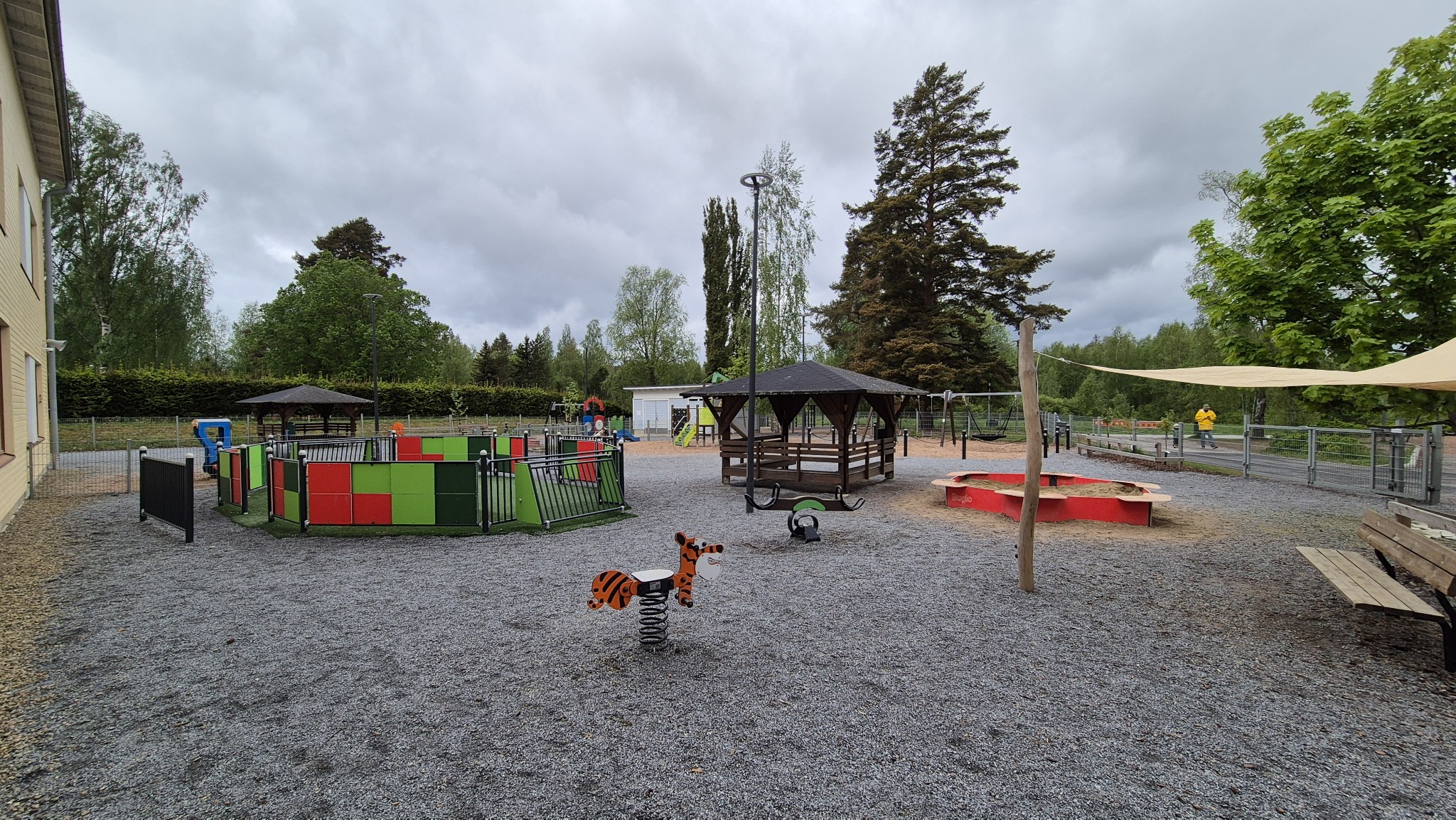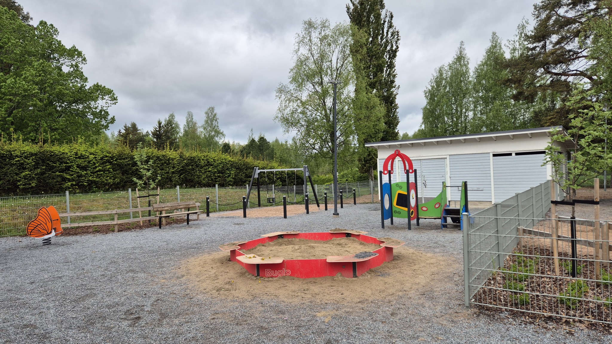 Useita varjonpaikkoja eri ilmansuunnista (etelä/länsi). Varjonpaikat mahdollistavat hyvin pitkät leikit ja tarvittavat tauot.